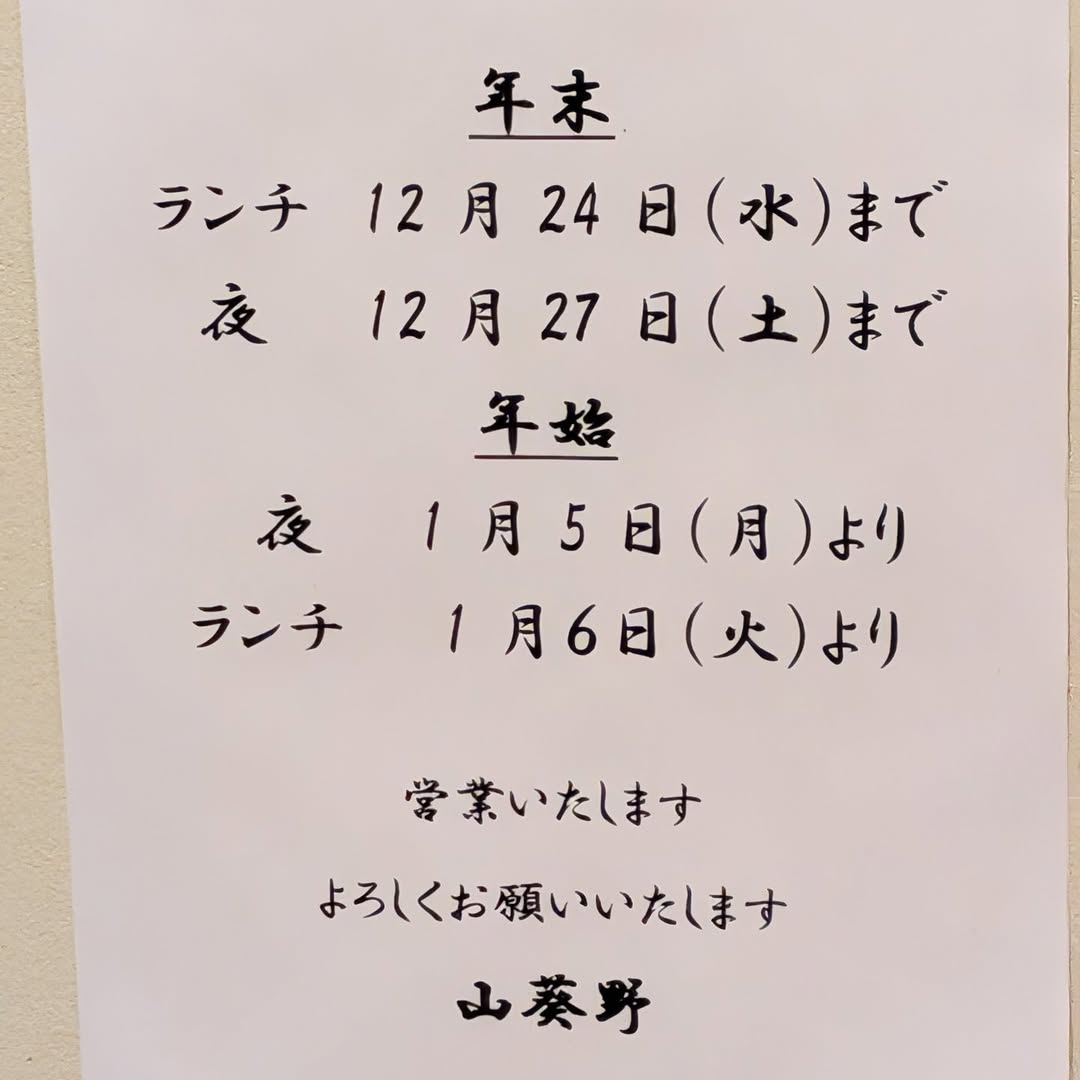 年末年始の休業のお知らせ! 宜しくお願いします。